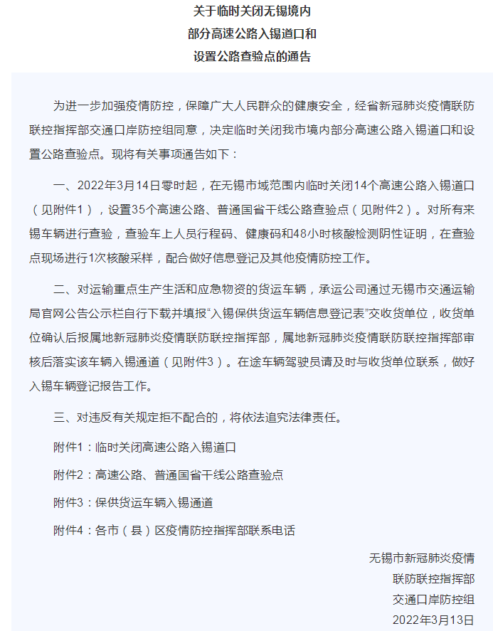 自2022年3月14日8时起,临时关闭以下高速公路入镇通道: