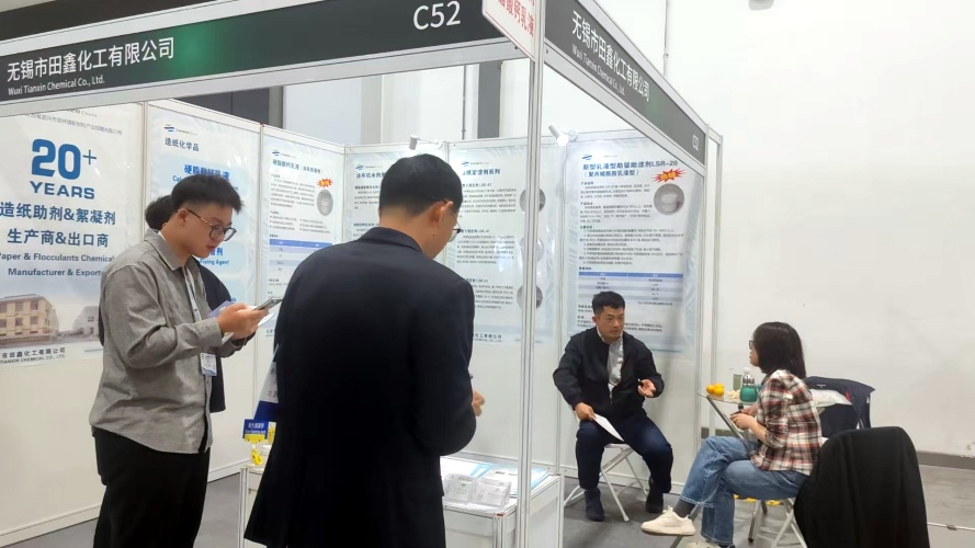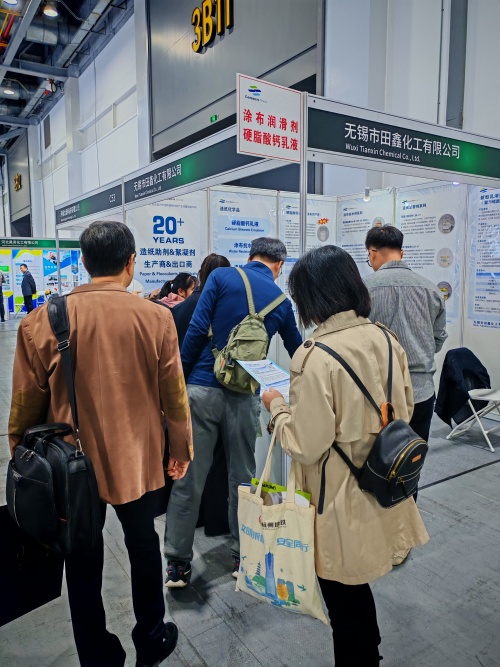今天是杭州纸基展(25.11.3-5)的第二天,田鑫化工展位来往参展者络绎不绝,我们(展位:C52)在现场恭候您~